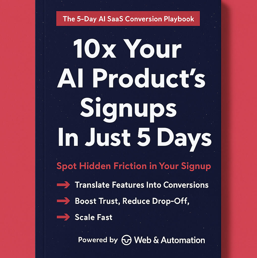 Day #1. The exact form fields to cut — if you’re losing users at step one (most AI tools get this wrong)Day #2. Why selling features fails — and how to translate your tech into business outcomes that convertDay #3. How to simplify your UX — without dumbing it down (this boosted our conversions instantly)Day #4. 3 trust signals — every SaaS funnel must include (and how we placed them for max lift)Day #5. The hidden cost of manual AI — how to scale without burning out or breaking your flowBONUS. Apply the 5 fixes with me 1:1 — book a free strategy session to optimize your AI signup flow